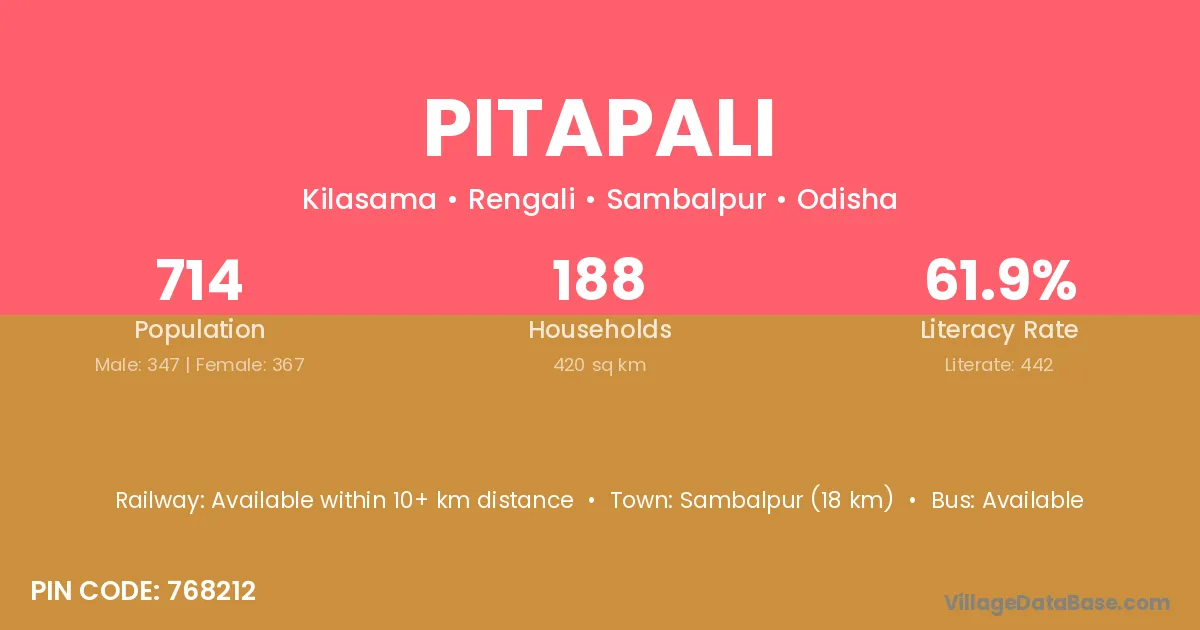 Pitapali village has a total population of 714 people, of which 347 are males and 367 are females.