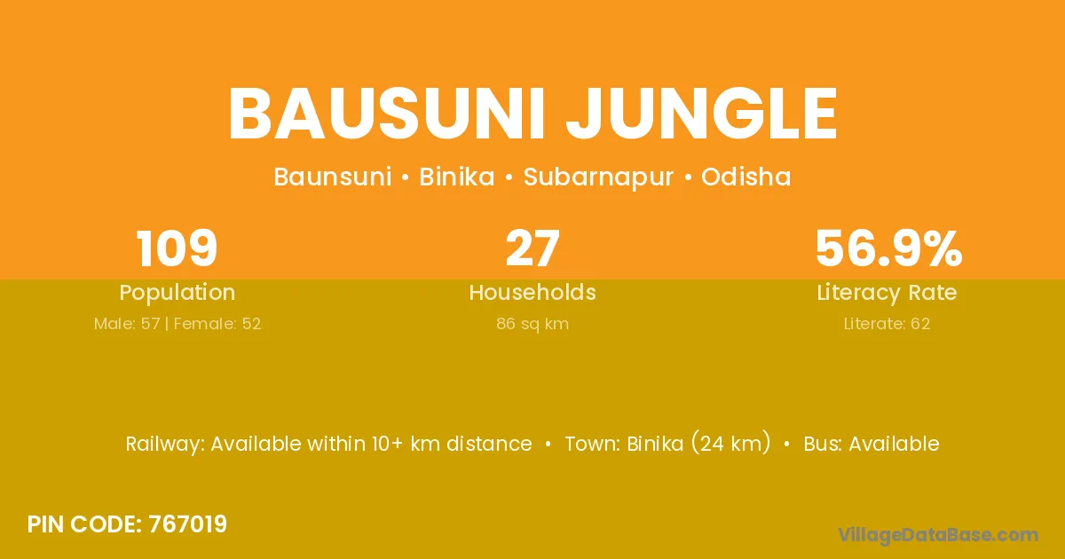 Bausuni Jungle village has a total population of 109 people, of which 57 are males and 52 are females.