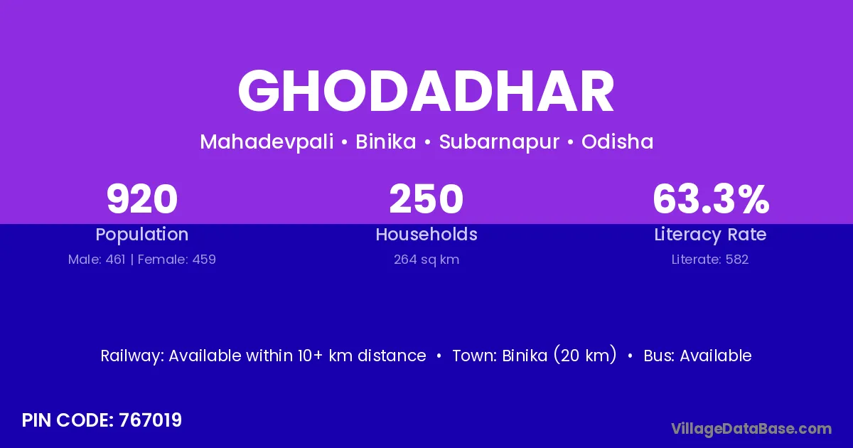 Ghodadhar village has a total population of 920 people, of which 461 are males and 459 are females.