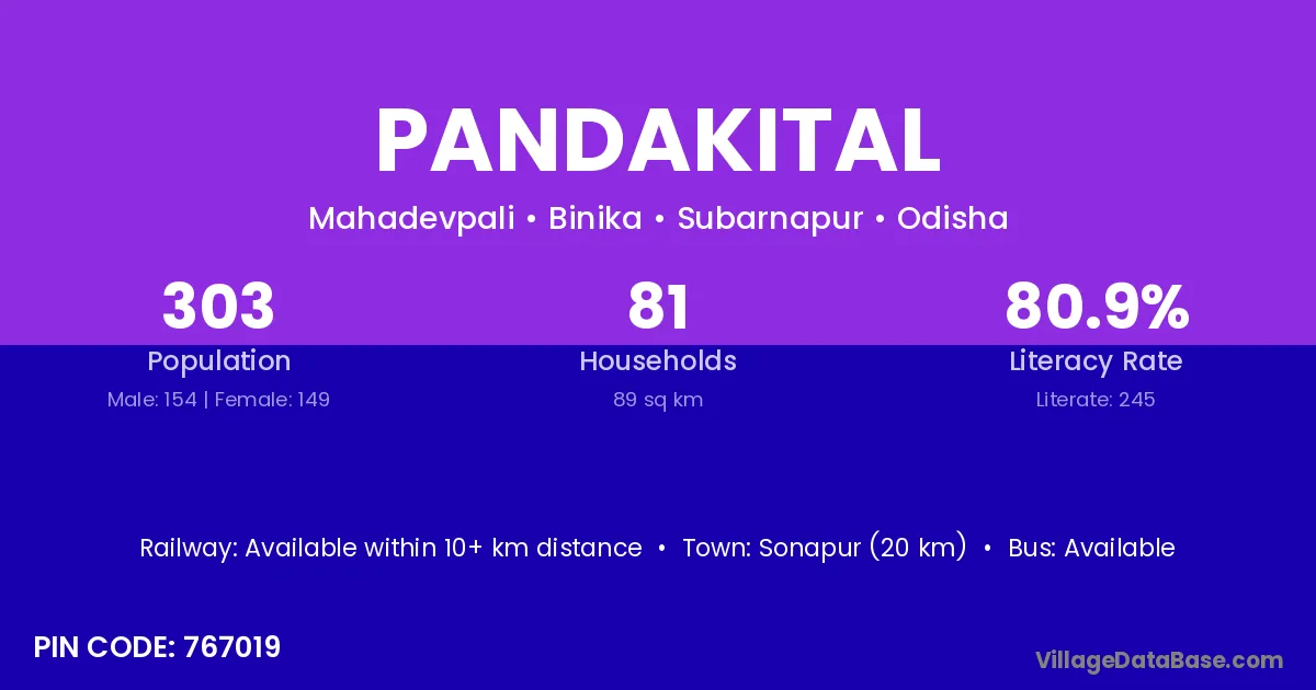 Pandakital village is located in the Binika Tehsil of the Subarnapur district in Odisha .