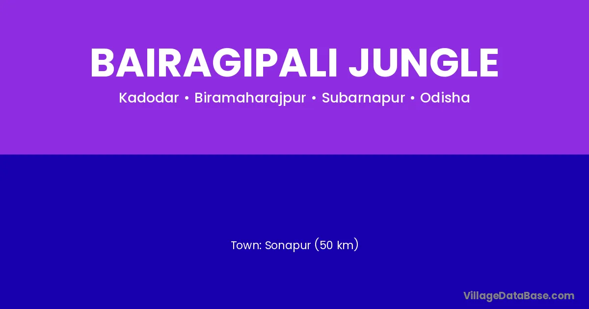 Sonapur (50 km) is the nearest town to Bairagipali Jungle village for major economic activities and is located approximately 50 km away.