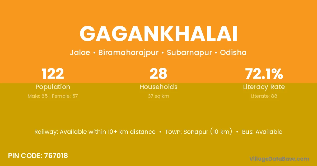 According to Census 2011 information, the village code of Gagankhalai village is 767018.