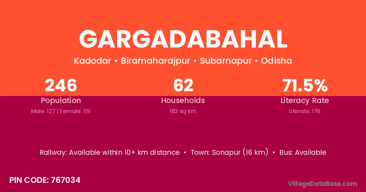 According to Census 2011 information, the village code of Gargadabahal village is 767034.