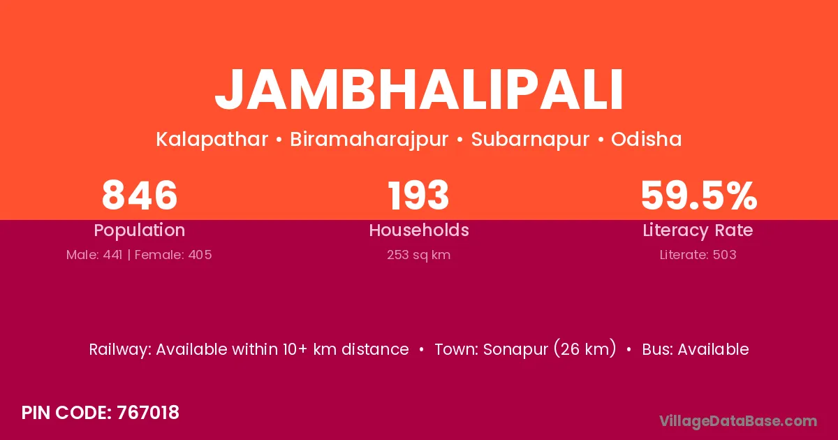 Jambhalipali village has a total population of 846 people, of which 441 are males and 405 are females.