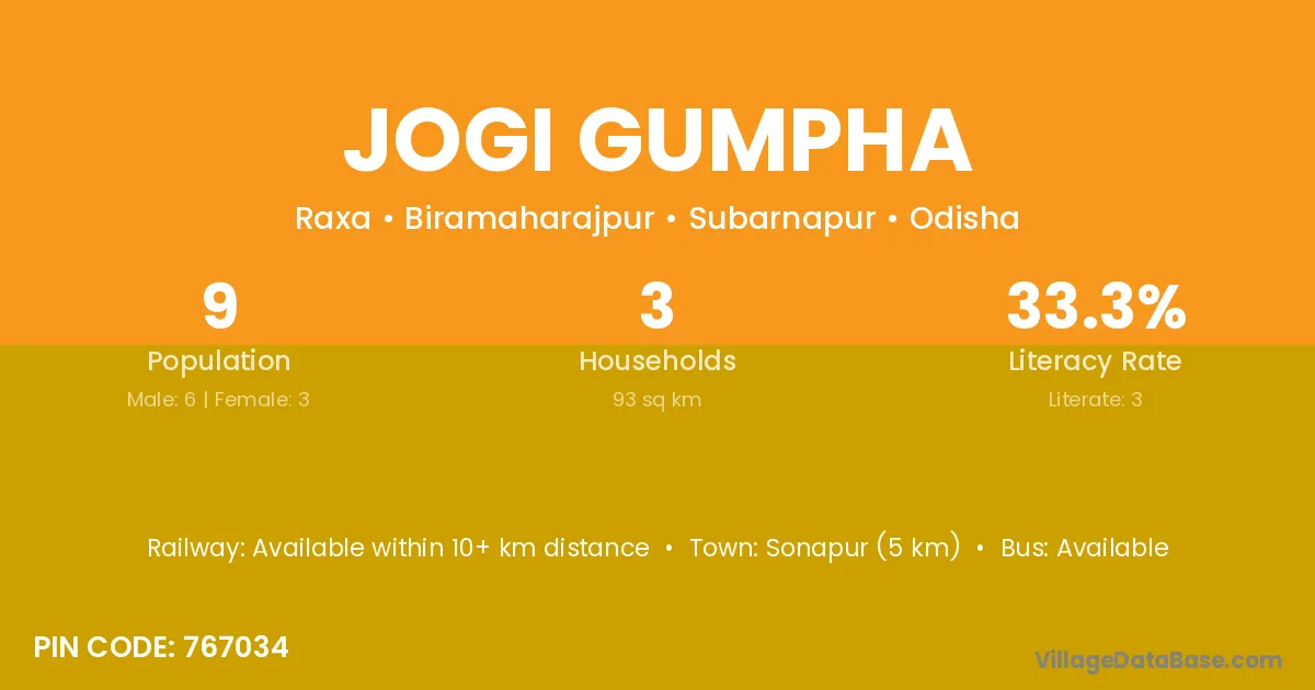 Jogi Gumpha village has a total population of 9 people, of which 6 are males and 3 are females.