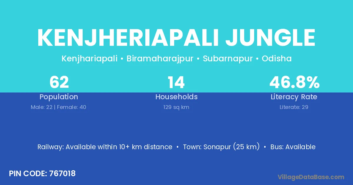 Kenjheriapali Jungle village has a total population of 62 people, of which 22 are males and 40 are females.