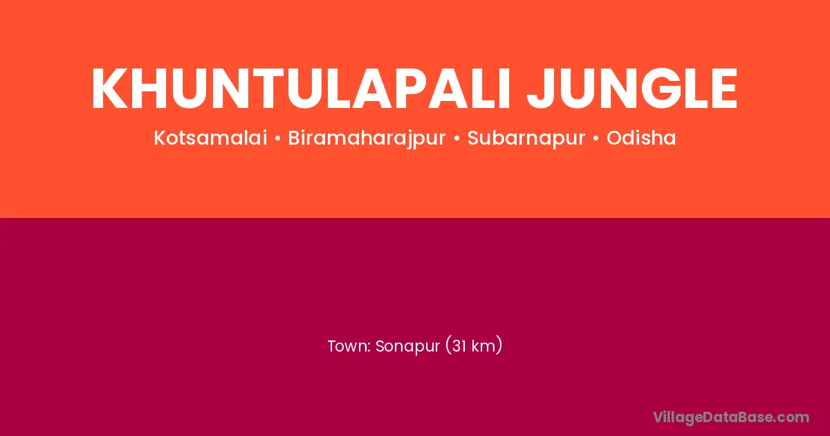 Sonapur (31 km) is the nearest town to Khuntulapali Jungle village for major economic activities and is located approximately 31 km away.