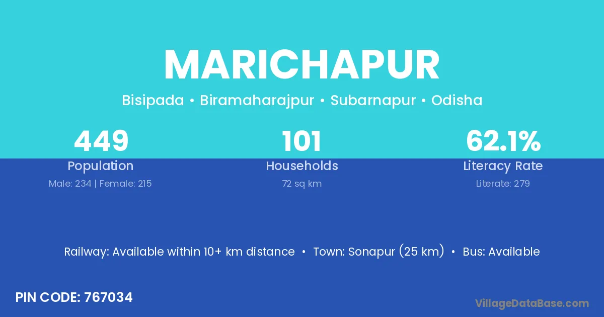 According to Census 2011 information, the village code of Marichapur village is 767034.