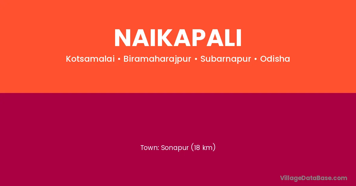 Sonapur (18 km) is the nearest town to Naikapali village for major economic activities and is located approximately 18 km away.