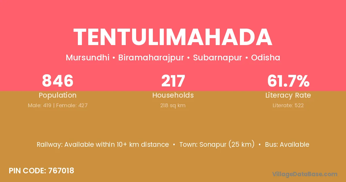 Sonapur (25 km) is the nearest town to Tentulimahada village for major economic activities and is located approximately 25 km away.