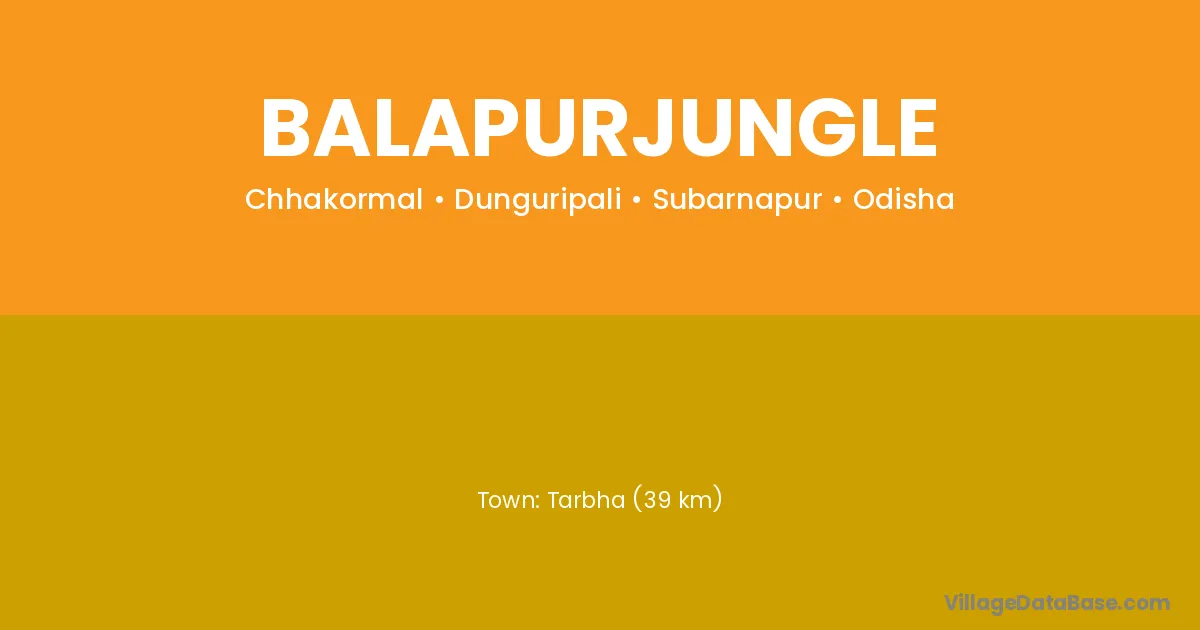 Tarbha (39 km) is the nearest town to Balapurjungle village for major economic activities and is located approximately 39 km away.