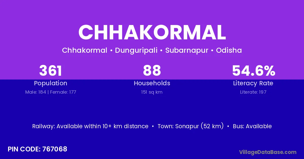 Chhakormal village is located in the Dunguripali Tehsil of the Subarnapur district in Odisha .