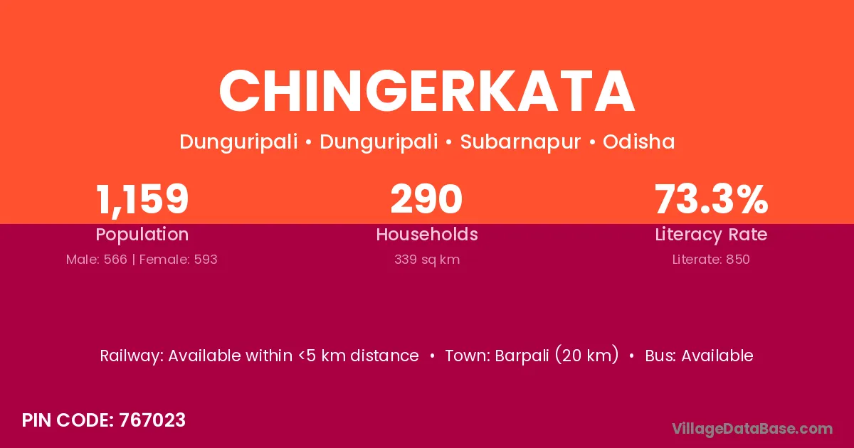 Chingerkata village is located in the Dunguripali Tehsil of the Subarnapur district in Odisha .