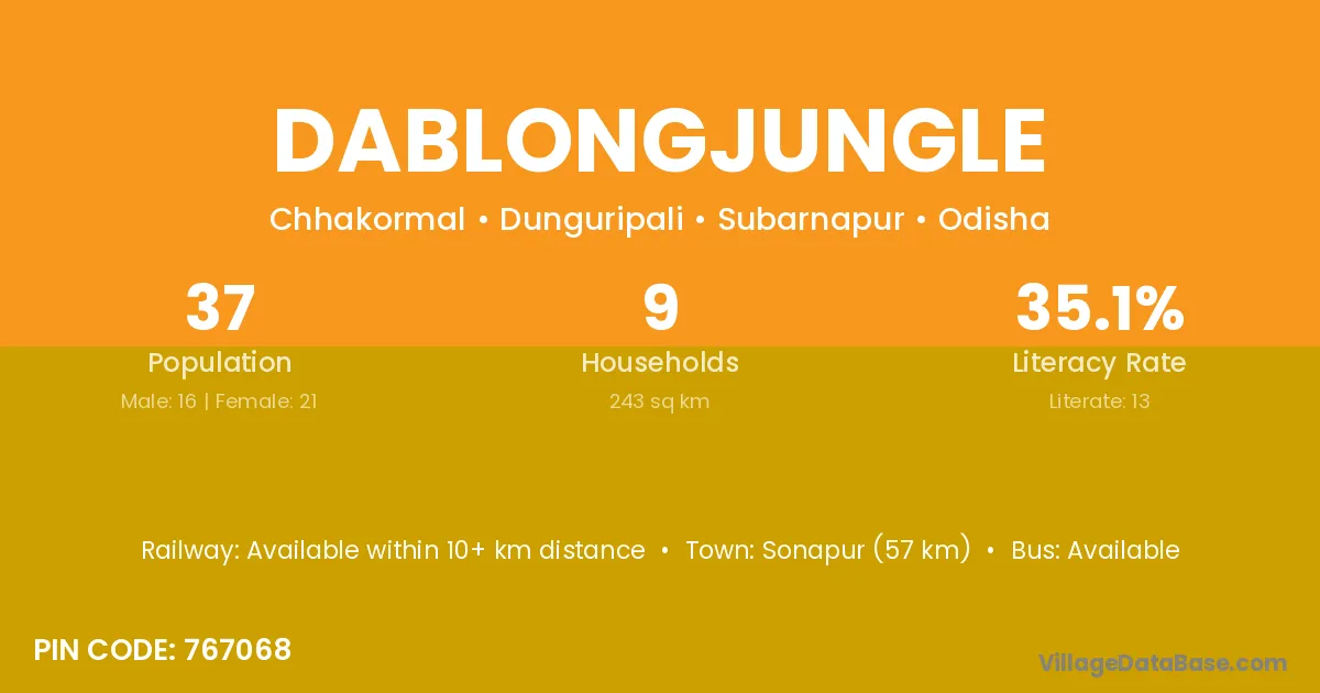 Dablongjungle village has a total population of 37 people, of which 16 are males and 21 are females.