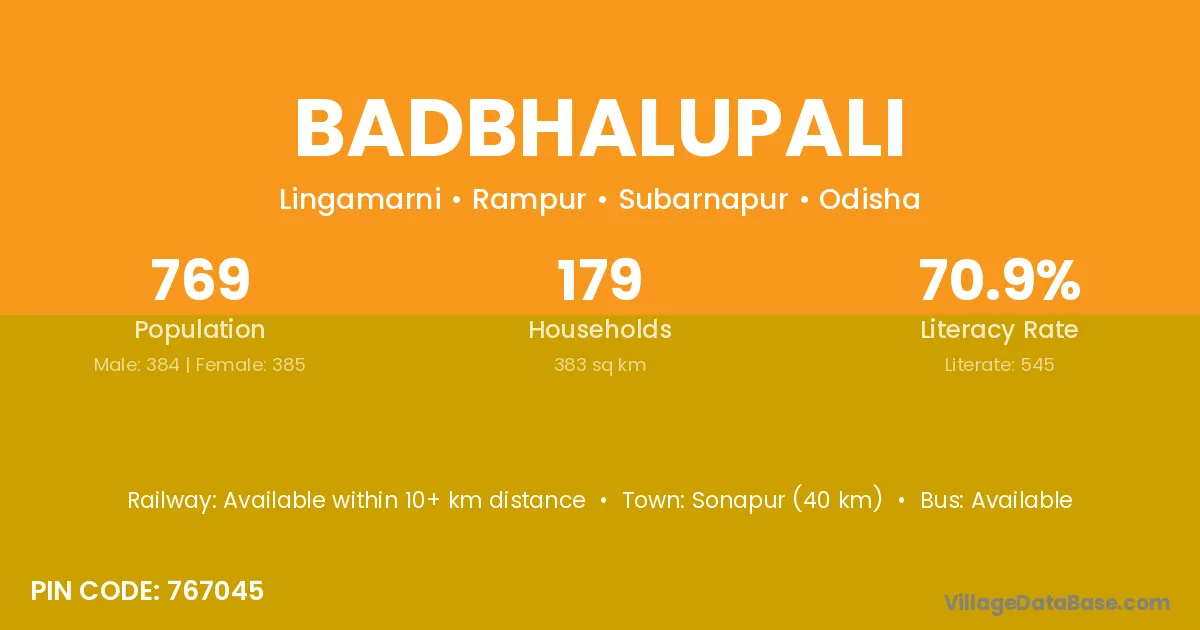 Badbhalupali village has a total population of 769 people, of which 384 are males and 385 are females.