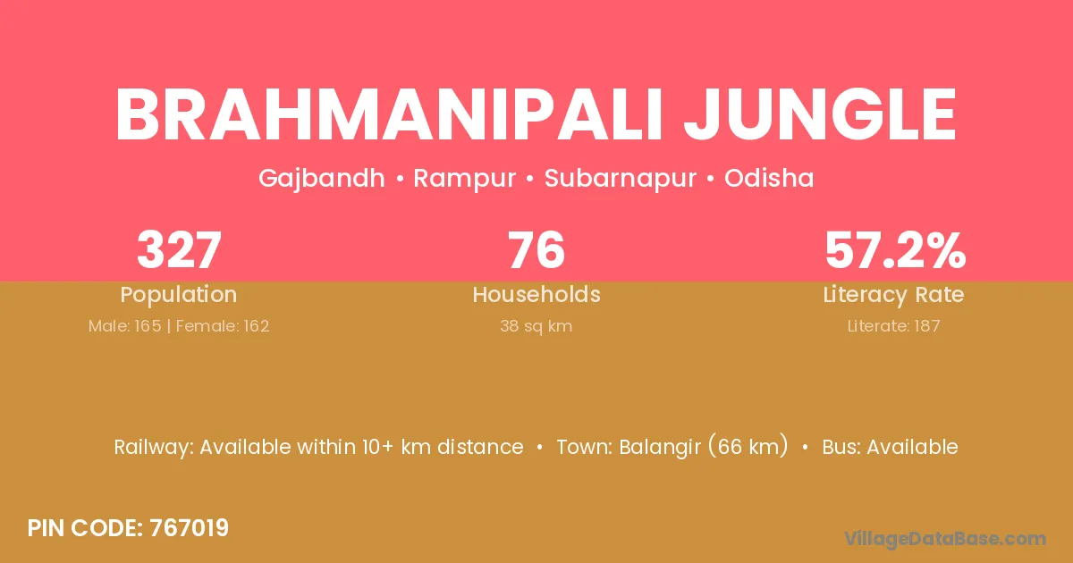 Brahmanipali Jungle village has a total population of 327 people, of which 165 are males and 162 are females.