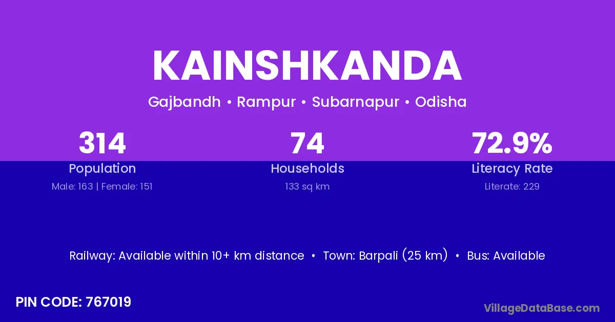 Barpali (25 km) is the nearest town to Kainshkanda village for major economic activities and is located approximately 25 km away.