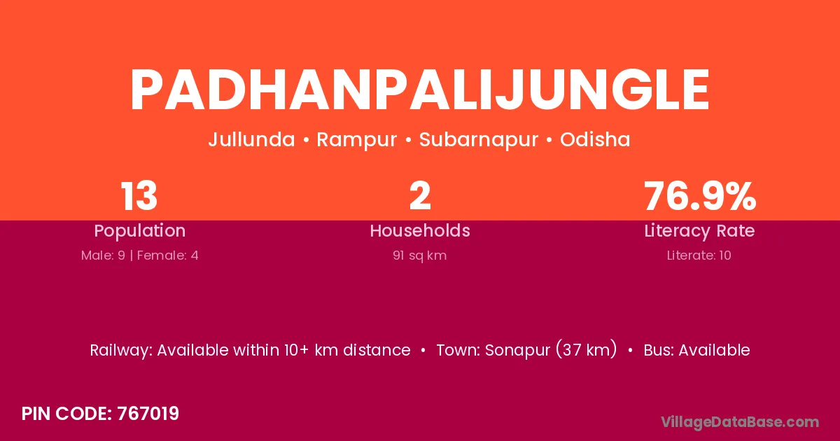Padhanpalijungle village has a total population of 13 people, of which 9 are males and 4 are females.