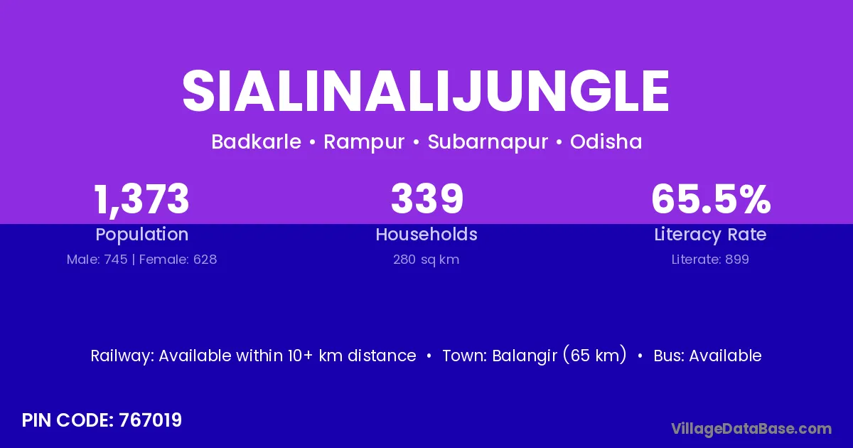 Balangir (65 km) is the nearest town to Sialinalijungle village for major economic activities and is located approximately 65 km away.