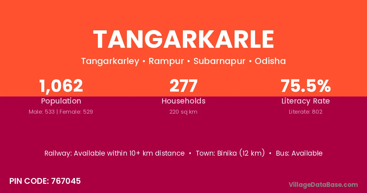 Tangarkarle village has a total population of 1,062 people, of which 533 are males and 529 are females.