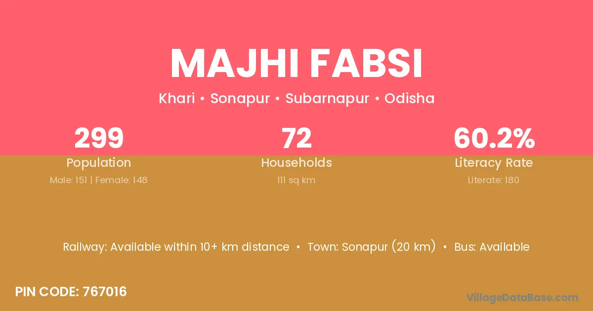 Majhi Fabsi village has a total population of 299 people, of which 151 are males and 148 are females.