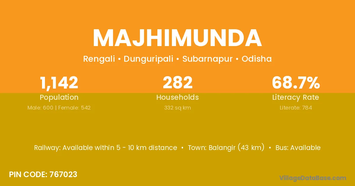 Sonapur (13 km) is the nearest town to Majhimunda village for major economic activities and is located approximately 13 km away.