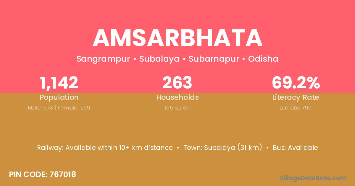 Subalaya (31 km) is the nearest town to Amsarbhata village for major economic activities and is located approximately 31 km away.