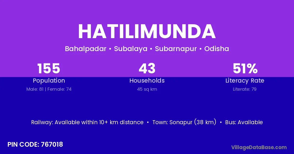 Sonapur (38 km) is the nearest town to Hatilimunda village for major economic activities and is located approximately 38 km away.
