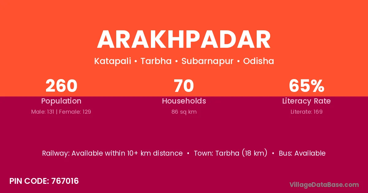 Arakhpadar village has a total population of 260 people, of which 131 are males and 129 are females.