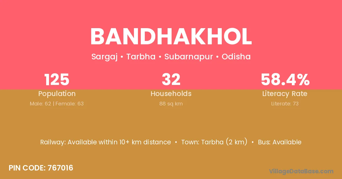 Bandhakhol village has a total population of 125 people, of which 62 are males and 63 are females.