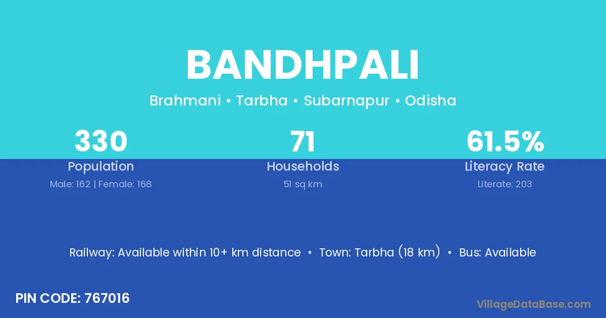 Tarbha (18 km) is the nearest town to Bandhpali village for major economic activities and is located approximately 18 km away.