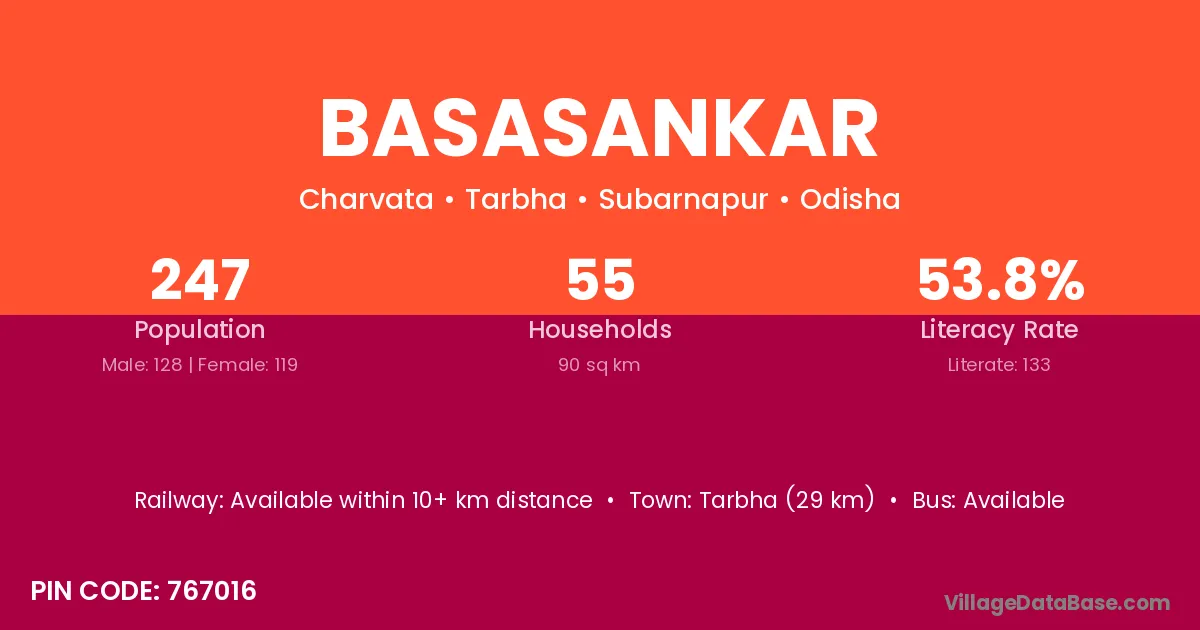 Basasankar village has a total population of 247 people, of which 128 are males and 119 are females.