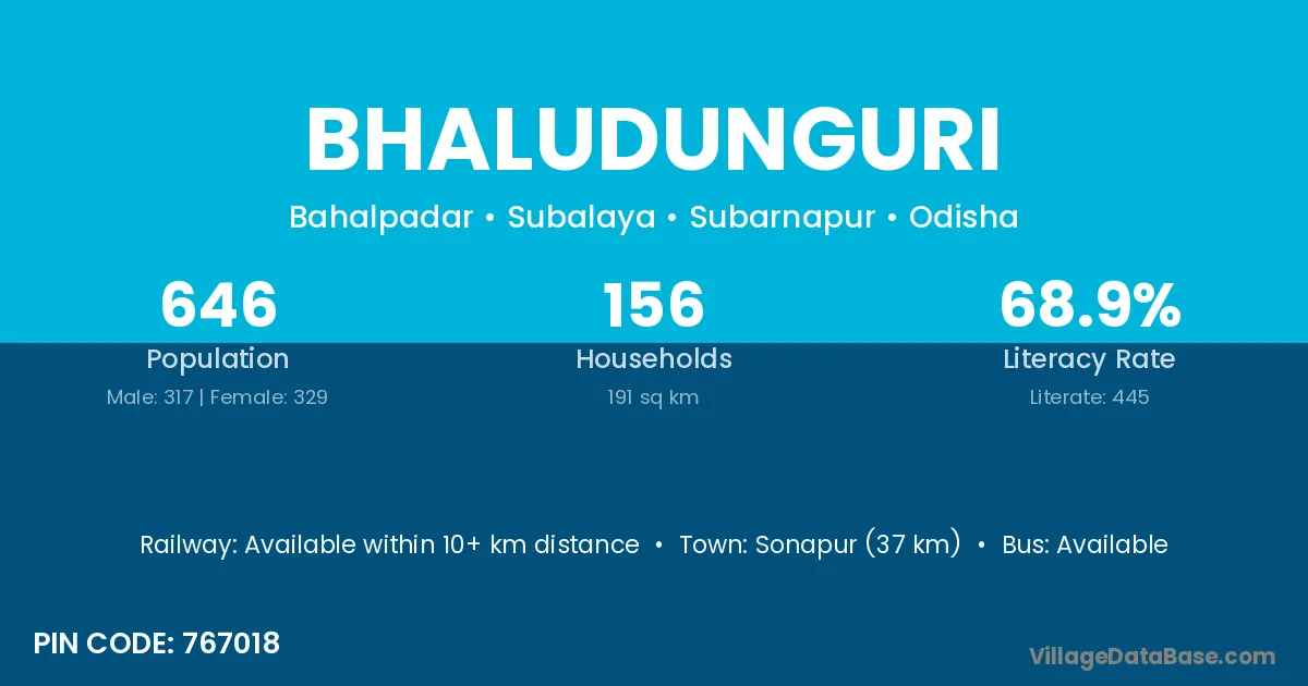 Tarbha (4 km) is the nearest town to Bhaludunguri village for major economic activities and is located approximately 4 km away.