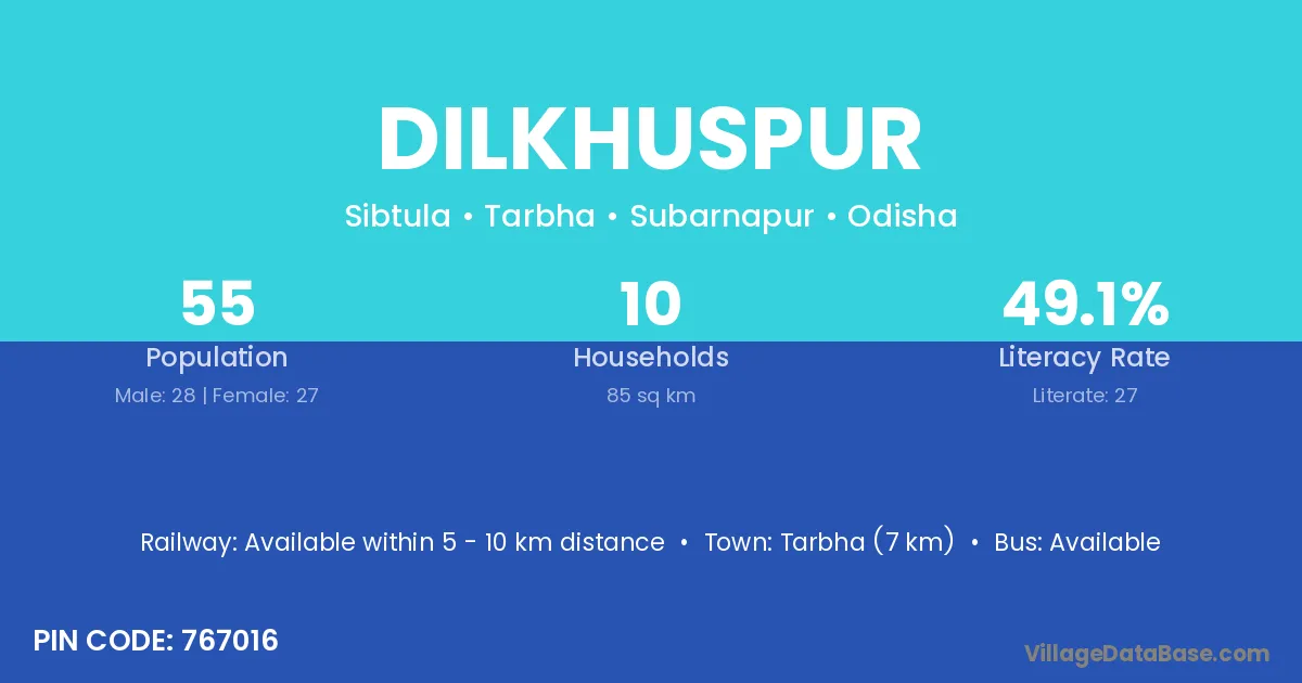 Tarbha (7 km) is the nearest town to Dilkhuspur village for major economic activities and is located approximately 7 km away.