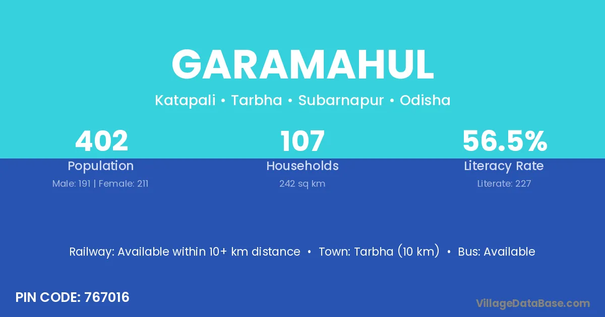 Tarbha (10 km) is the nearest town to Garamahul village for major economic activities and is located approximately 10 km away.