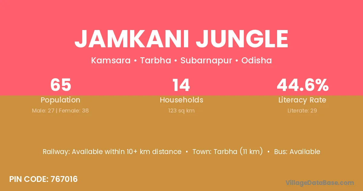 Tarbha (11 km) is the nearest town to Jamkani Jungle village for major economic activities and is located approximately 11 km away.