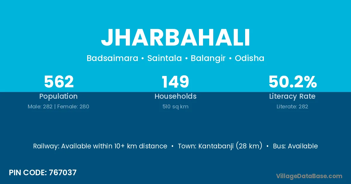 Tarbha (29 km) is the nearest town to Jharbahali village for major economic activities and is located approximately 29 km away.