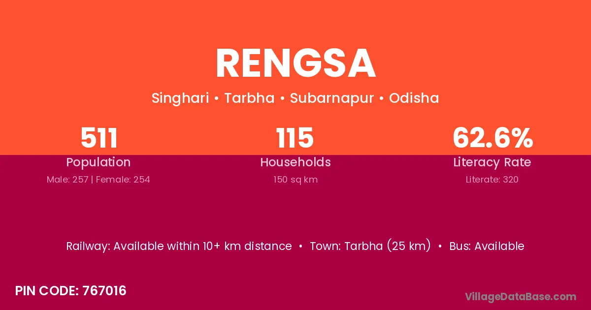 Rengsa village has a total population of 511 people, of which 257 are males and 254 are females.