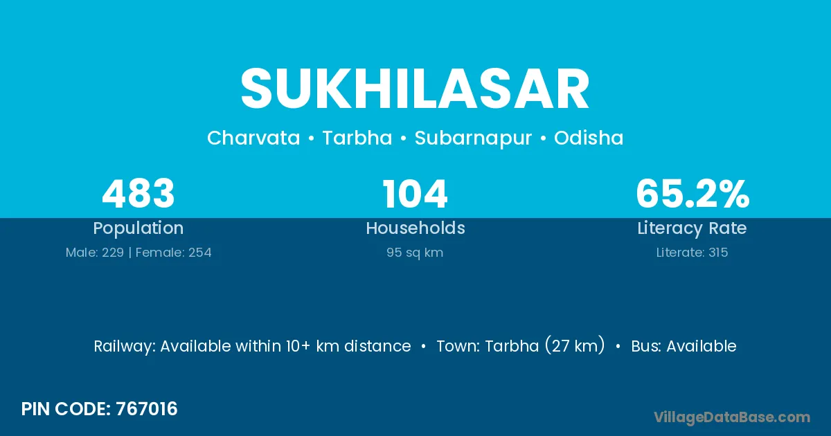 Tarbha (27 km) is the nearest town to Sukhilasar village for major economic activities and is located approximately 27 km away.