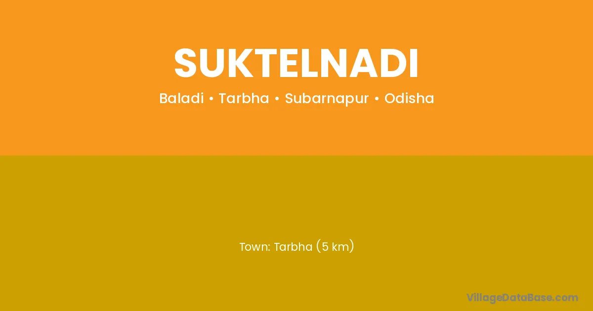 Tarbha (5 km) is the nearest town to Suktelnadi village for major economic activities and is located approximately 5 km away.