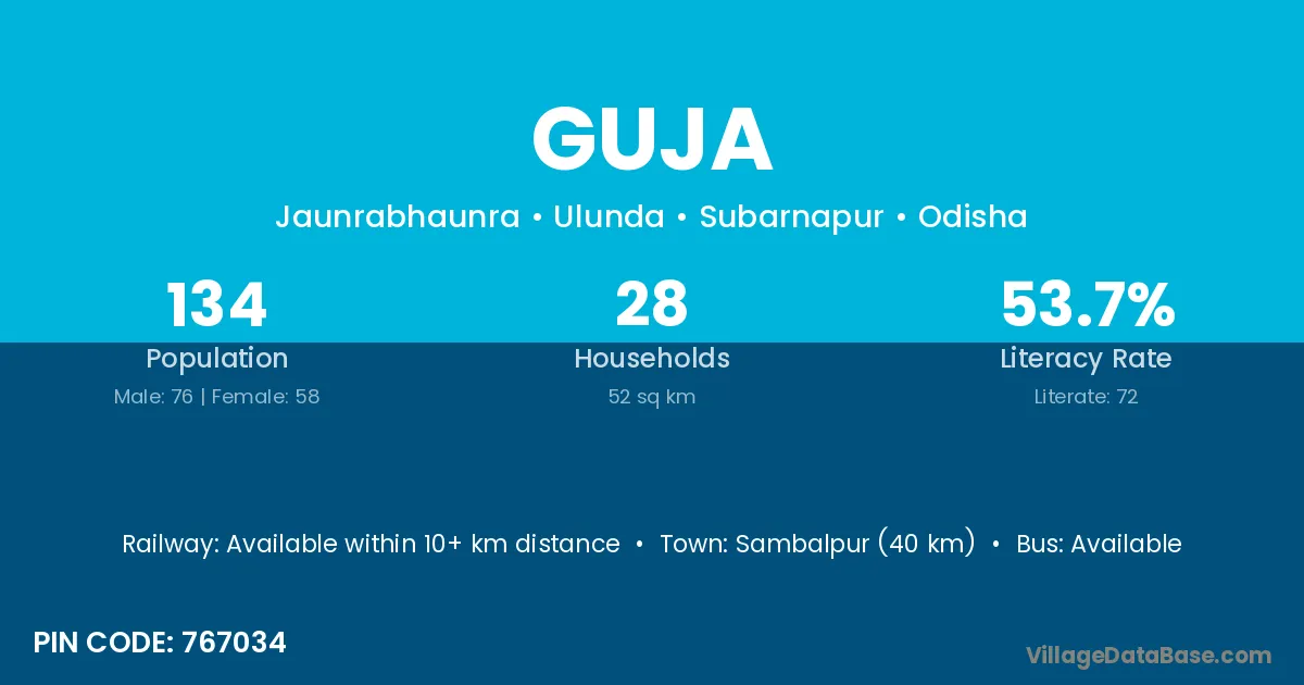 Sambalpur (40 km) is the nearest town to Guja village for major economic activities and is located approximately 40 km away.