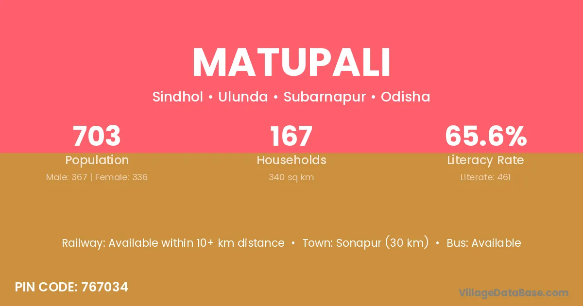 Matupali village has a total population of 703 people, of which 367 are males and 336 are females.