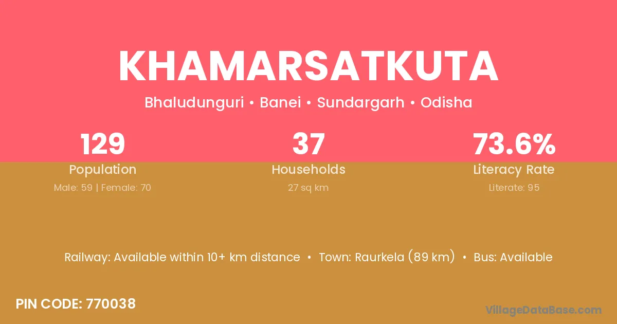Khamarsatkuta village has a total population of 129 people, of which 59 are males and 70 are females.