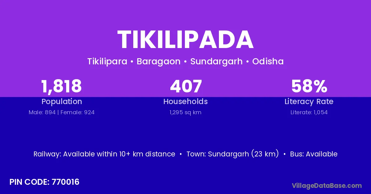 There are approximately 407 households in Tikilipada village.