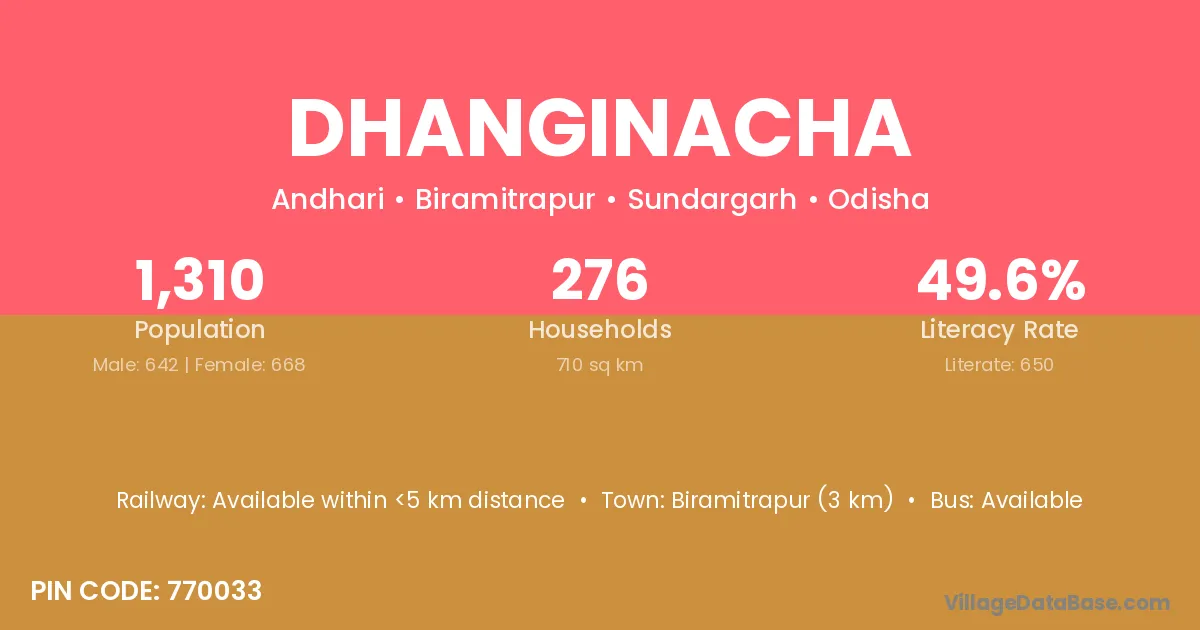 Dhanginacha village has a total population of 1,310 people, of which 642 are males and 668 are females.