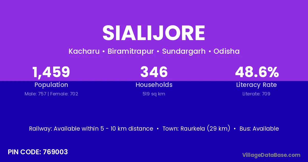 Sialijore village has a total population of 1,459 people, of which 757 are males and 702 are females.