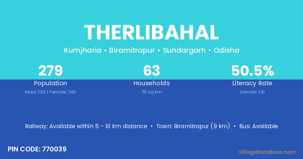 Therlibahal village has a total population of 279 people, of which 139 are males and 140 are females.