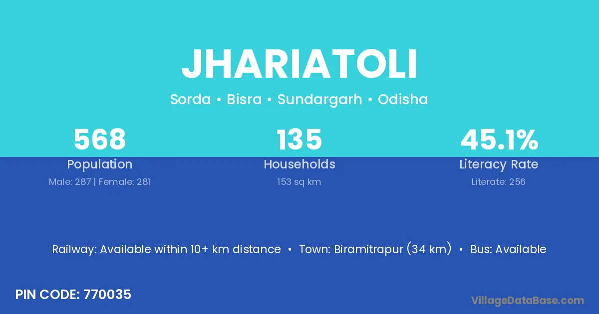 Biramitrapur (34 km) is the nearest town to Jhariatoli village for major economic activities and is located approximately 34 km away.