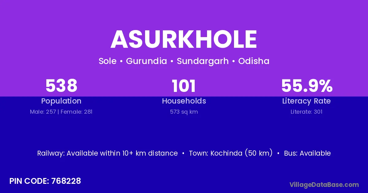 According to Census 2011 information, the village code of Asurkhole village is 768228.