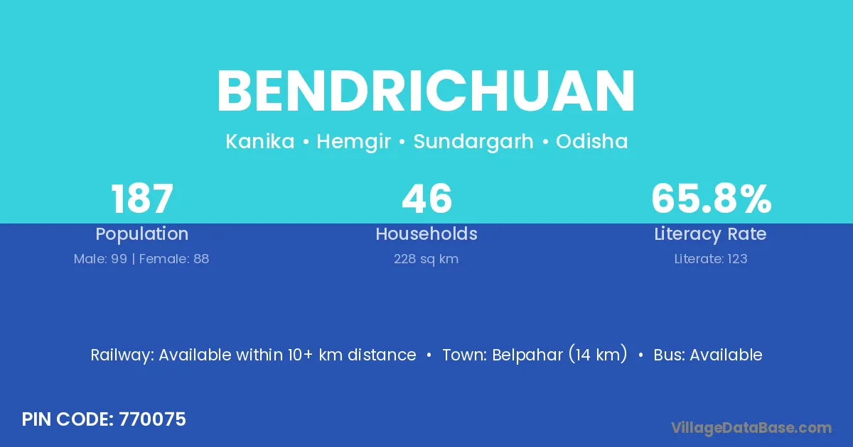 Belpahar (14 km) is the nearest town to Bendrichuan village for major economic activities and is located approximately 14 km away.